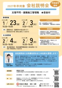 ハネットグループ > お知らせ > 花田工務店 > 採用情報 > 採用情報|花田工務店「新卒会社説明会」を開催します! 1/23(金)・2/3(火)・2/4(水)・2/9(月) > 会社説明会_リーフレット