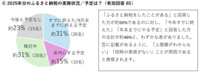 2025年9月25日~10月10日、ハネットグループ社内でふるさと納税に関するアンケ-トを実施しました。8割くらいの社員はふるさと納税をしているだろうと予想していましたが、予想に反してふるさと納税をしたことがある社員は約半数でした。